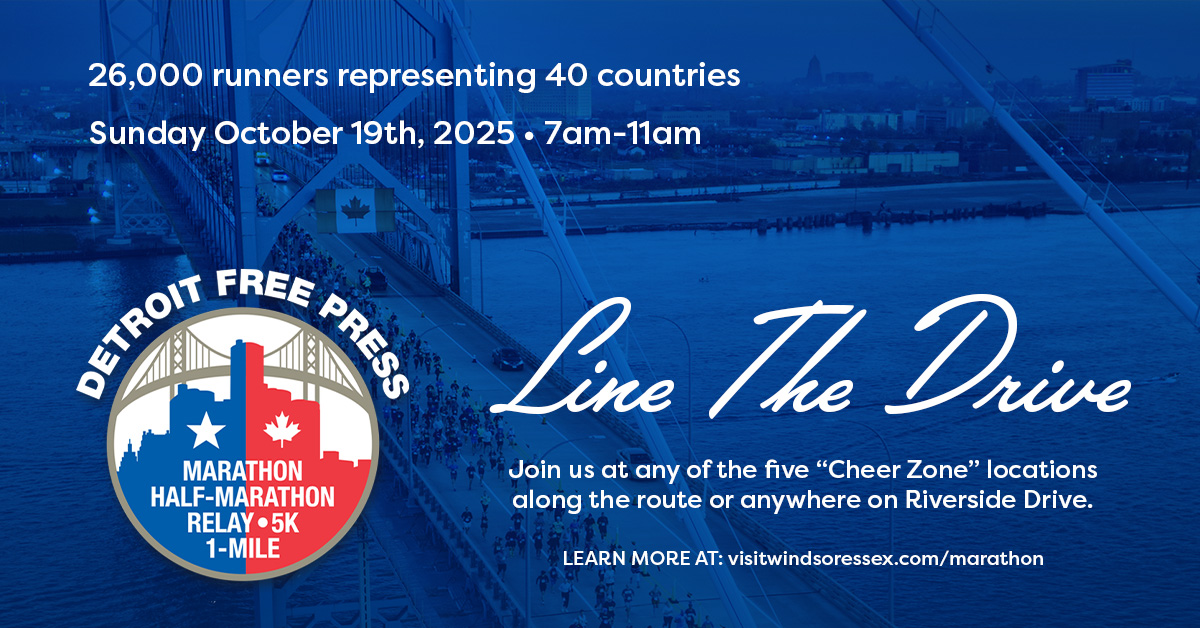 Tourism Windsor Essex Pelee Island in partnership with the City of Windsor and the Downtown Windsor BIA want Windsor Essex residents to once again Line The Drive during the Detroit Free Press Marathon Sunday October 19th from 7am through 11am.