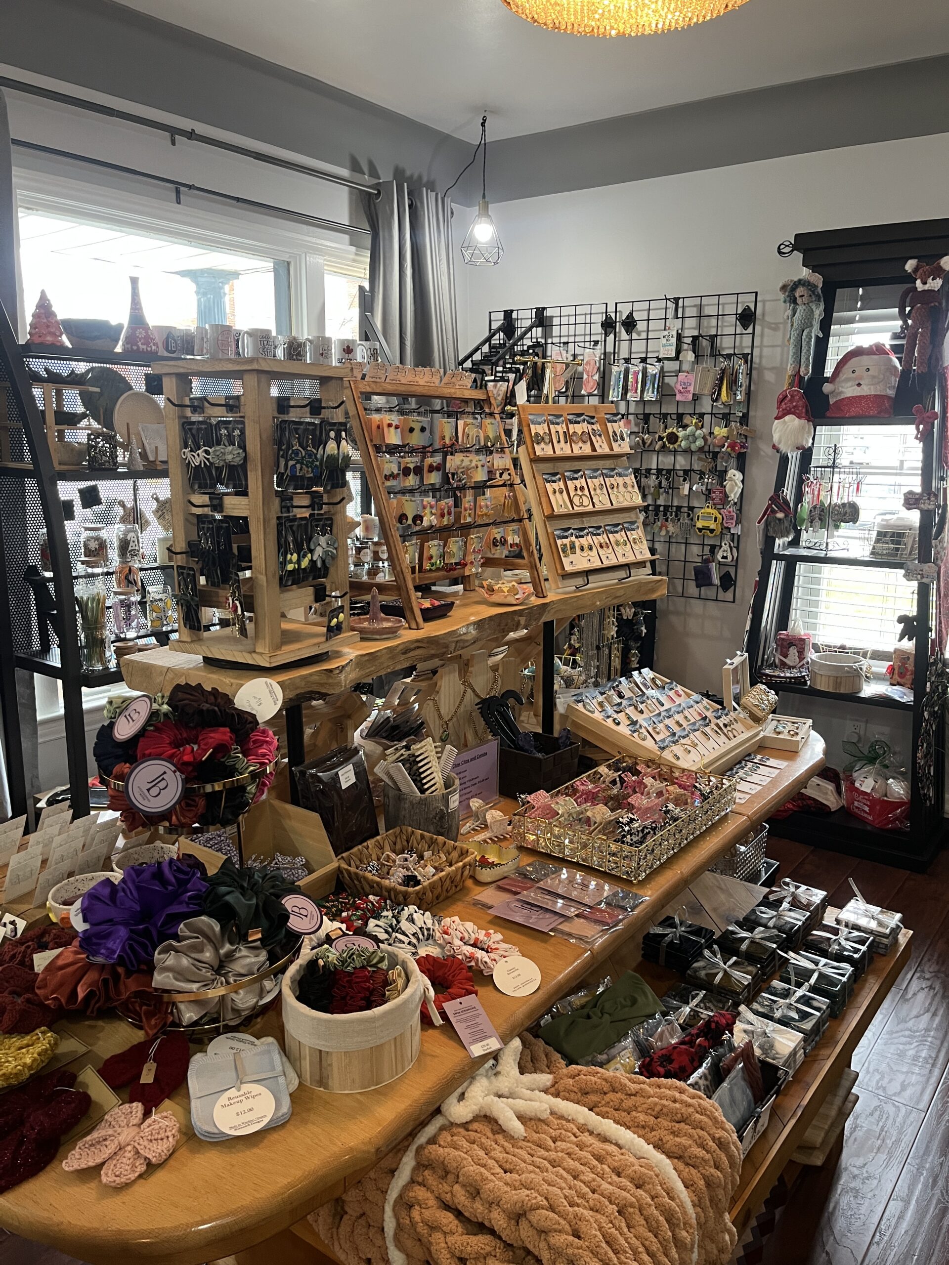 This spot is unique because the store is literally inside a house – cozy, artsy, and fun. They showcase local artisans such as Jennie B. Designs, Made by MMLB, and more. You can curate gifts for every age, from baby presents to stocking stuffers. And the best part? They understand last-minute shoppers (guilty – with my busy schedule, I always need to find something fast!). They’ll wrap your gift and include tissue paper, making your shopping experience easy and smooth – ready to go right to the person you’re giving it to.