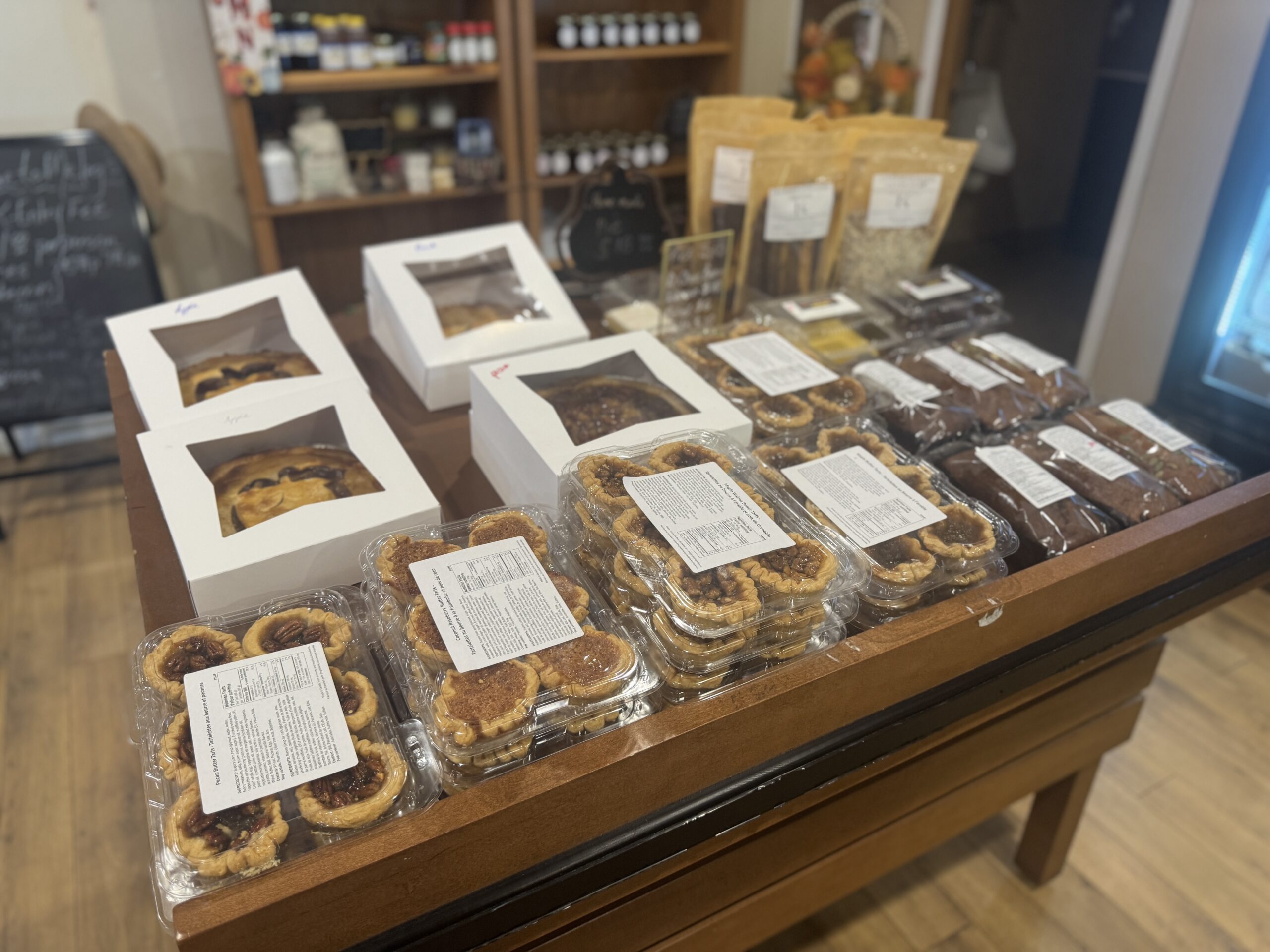 I always find something new (and tasty) every time I visit. While browsing their selection of butter tarts, pies, and cookies, a fellow customer recommend I snag a loaf of their freshly baked focaccia, which sells out almost immediately once it’s put out. I have two words: life changing. Chewy and crispy and light anf fluffy all at the same time. And the garlic parm on top? Chef’s kiss. Really, is there anything better than warm bread straight out of the oven?