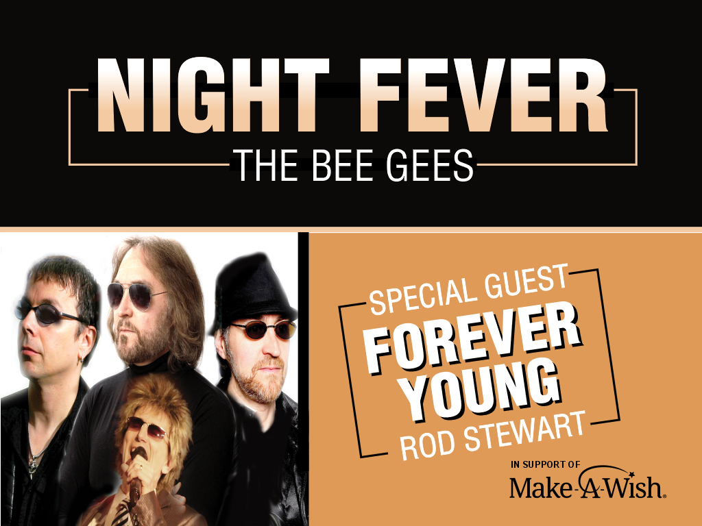 Night Fever, the world’s number one production of the Bee Gees, and Forever Young, a dynamic Rod Stewart tribute, combine to deliver an unforgettable night of music.