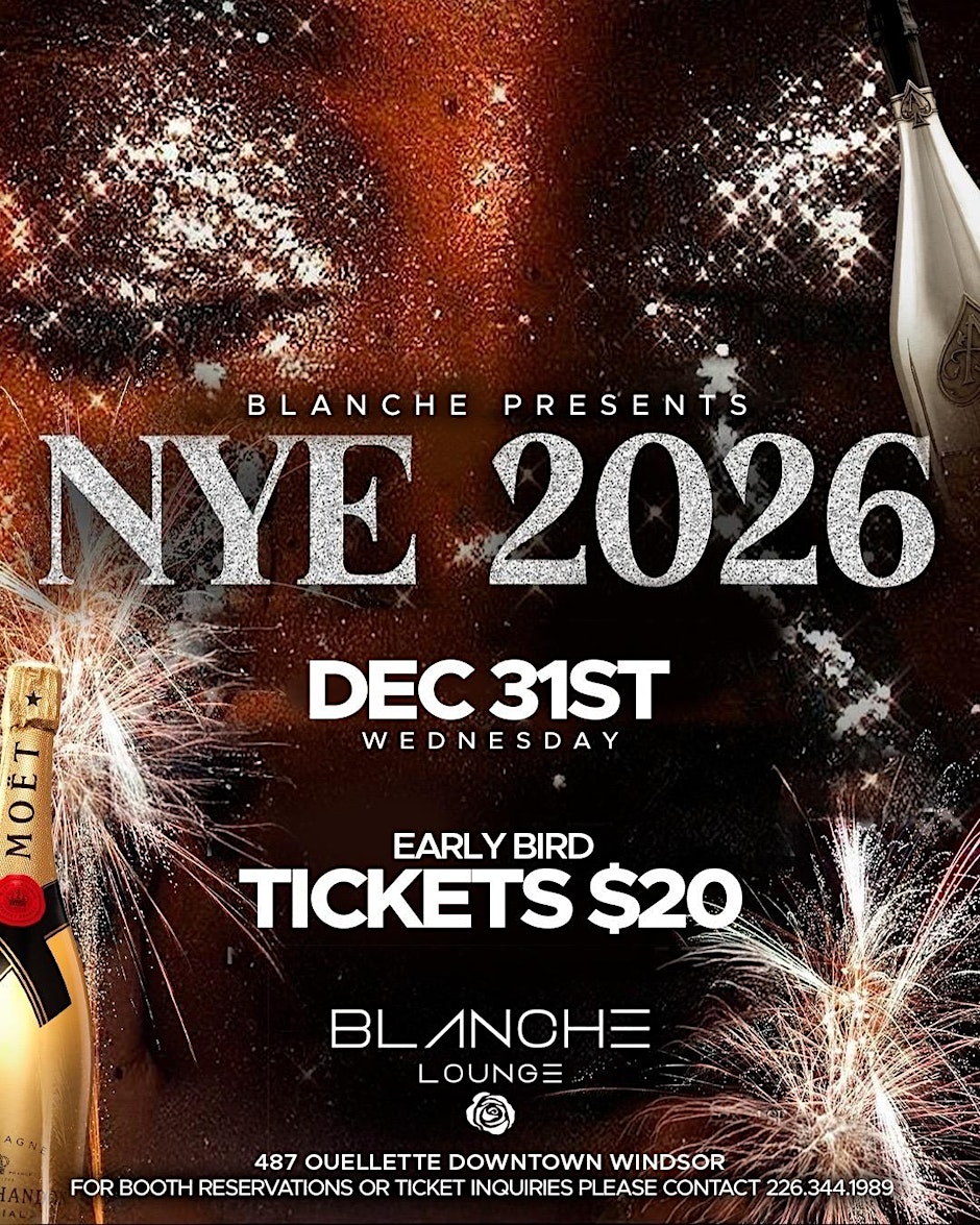 Ring in the New Year in style with us on Wednesday, December 31 as we celebrate the end of 2025 with one of the biggest nights of the year, NEW YEAR’S EVE at Blanche Lounge. We are opening our doors for a special event filled with energy, music and unforgettable moments. Advance tickets are highly recommended. Contact 226-344-1989 for Booth Reservations! Bottle Minimum will be required. Don’t miss your chance to ring in 2026 at the best nightclub celebration of the year!