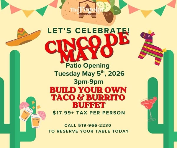 Join us as we celebrate Cinco De Mayo on Tuesday, May 5th—with an even better Taco Tuesday! Enjoy our Taco & Burrito Buffet for just $17.99 + taxes.