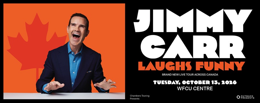 Known worldwide for his lightning-quick wit, dark one-liners and unmistakable laugh, Jimmy Carr remains one of the most successful and best-selling comedians on the planet. A master of razor-sharp humour, he has toured to over 40 countries, sold millions of tickets, and continues to be one of the most streamed stand-ups of the last decade. His most recent tour, Terribly Funny 2.0, surpassed one million tickets worldwide and saw him perform 293 shows across 145 cities in a single year—cementing his reputation as one of the hardest-working acts in comedy. Following his sold-out 2023 tour, Jimmy Carr returns to Canada with his fifth and most ambitious Canadian tour yet, Jimmy Carr: Laughs Funny. Alongside time-honoured cities such as Toronto, Vancouver, Montréal, Calgary, Ottawa, Halifax and Winnipeg, this tour will bring Jimmy to new markets he has never performed in before, expanding his Canadian footprint further than ever. Don’t miss Jimmy Carr coming to a city near you in Fall 2026.