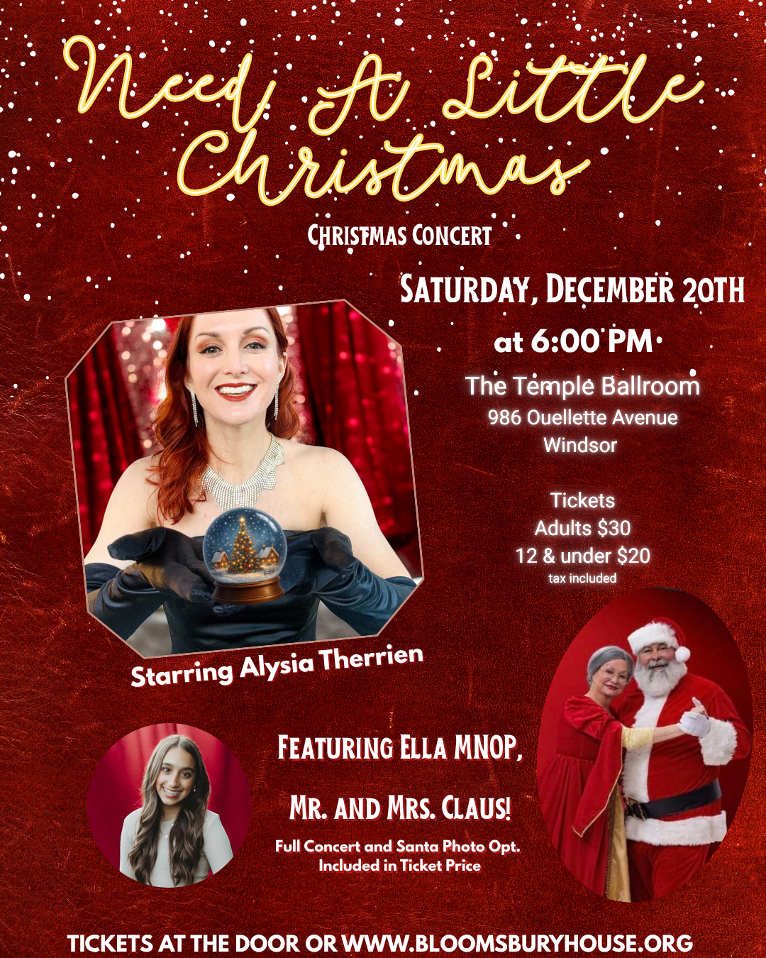 Each holiday season keeps getting busier and busier, but the true meaning of Christmas needs to never fade away. Come join Alysia Therrien with Ella Paciocco for this one of a kind Christmas concert experience. We all “Need A Little Christmas” because a little joy goes a long way.